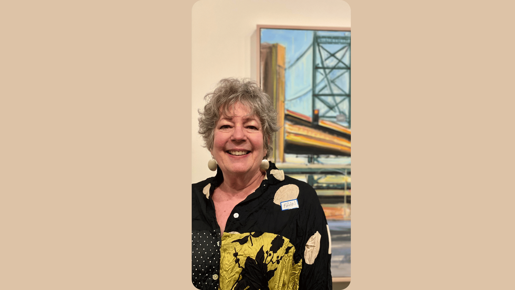 Philadelphia Artist, Fran Lightman Gibson, wore Alembika UNDER THE SUN BUTTON DOWN SHIRT, MIX and ICONIC STRETCH JEANS, CITRON to her solo show at the Ceruleans …