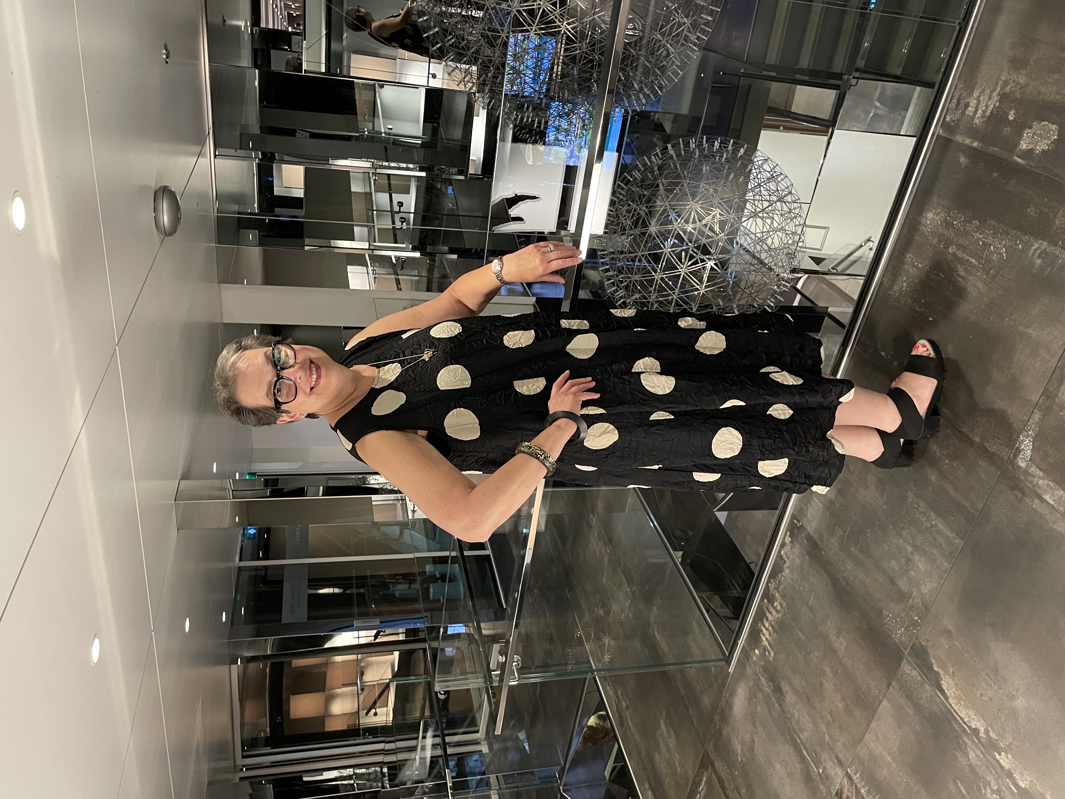 Laura in Bold Dot Sleeveless Maxi Dress (left), Gemma Sleeveless Tunic Top (right).