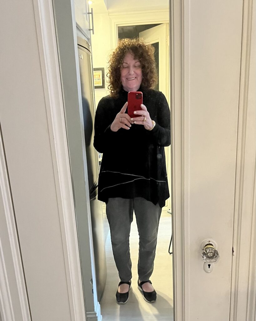 I love Urban striped black lantern pants. You can dress them up or casual. They are flattering, comfortable and freeing. My first purchase was the Galaxy Punto Pants and then I was hooked on Alembika!