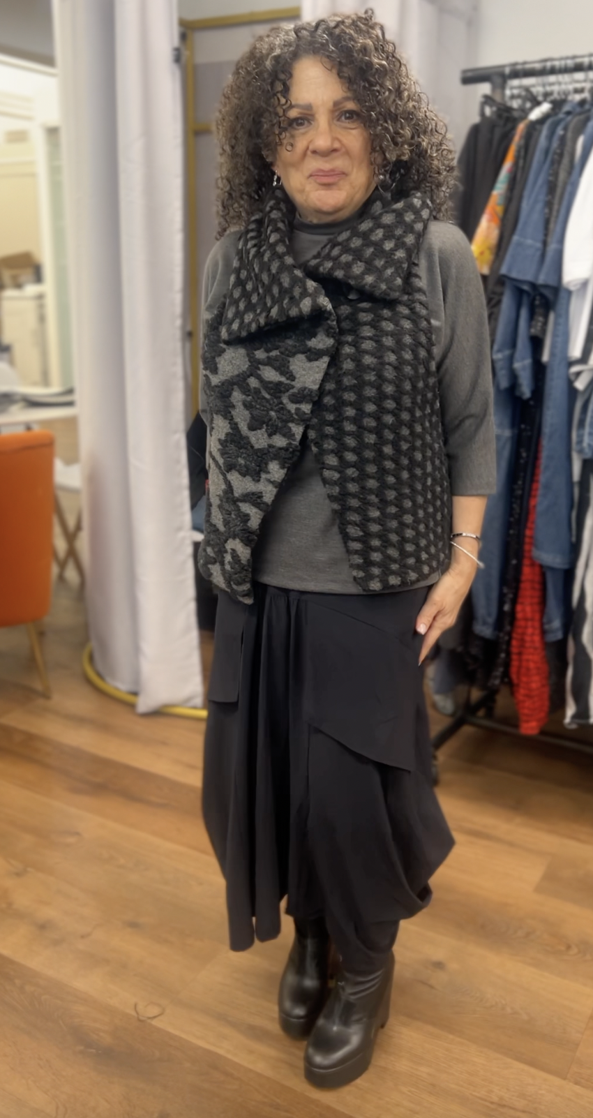 At Alembika, we have thoughtfully curated a selection of dresses, pants, and tops that compliment the petite frame. While our “petite” styles are not designed in traditional petite measurements, these hand-selected choices ensure style, comfort and work well for ladies who are 5′ 4″ or under — like our in-house stylist Wendi who is 4′ 11″.