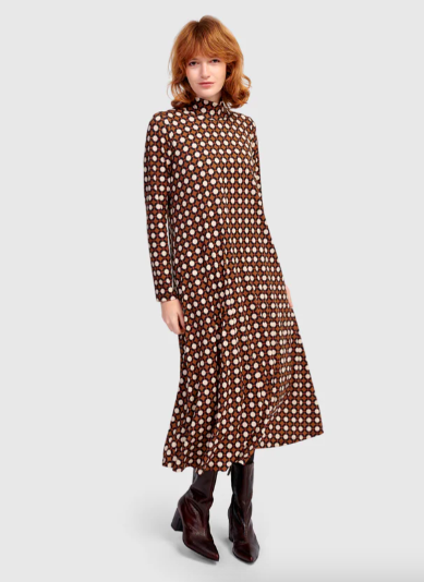 Experiment with hemlines, but be cautious not to overwhelm your frame. A well-fitted maxi dress in an autumn-friendly fabric — like the Ziggy A-line Dress Groove — can be a showstopper.
