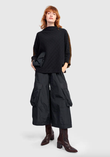 Opt for neutral tones or classic black to maintain an air of sophistication. You may like the Carbon Barrel Pants Crescent and Urban wide Cargo Pants.