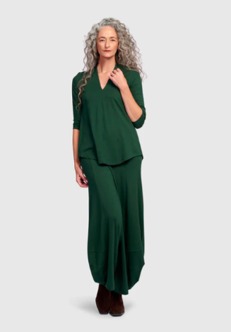 V-Neck Tops and Dresses: These draw attention upward, making the upper body appear longer and slimmer. This can help balance the proportions for apple-shaped individuals by creating a more elongated and flattering look. V-neck tops and dresses can be found in many silhouettes and colors in our Essentials Collection and Best Sellers.