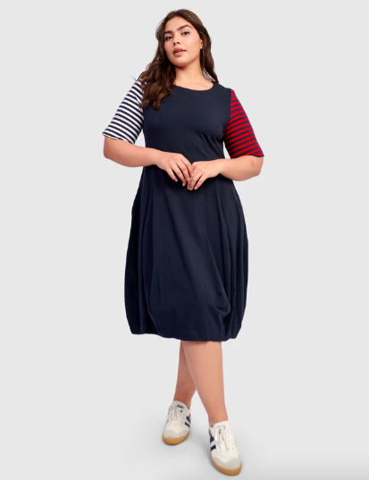 For a boat party, embrace nautical vibes with Summer Clothes for Women Over 50. navy, white and a pop of red create a classic, sailor-inspired look. The breathable fabric ensures comfort even on a warm day at sea. Ozai N Ku Greco Dress (left), Barbie Wonderful Cotton Dress (center), Saint Marie Dress (right).