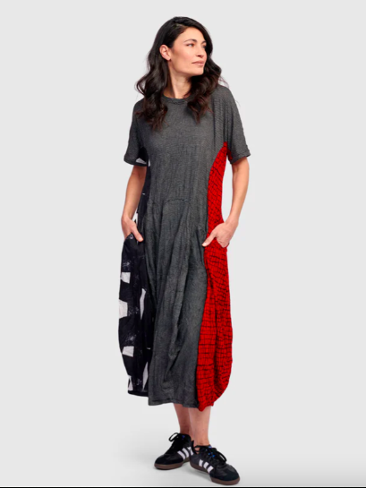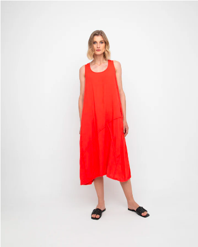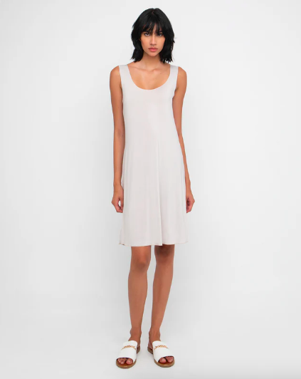 You may like Guest Designer Ozai N Ku Sunrise Dress (left) and Ozai N Ku Slip Dress (right) made in a combo of semi-sheer relaxed weave fabric and a smooth tight weave fabric.