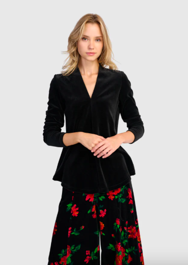 Slip into Everyday Velvet V-neck Top and pair with statement pant such as the Chie Velvet Punto Pants seen here that moves like a spell with every step.