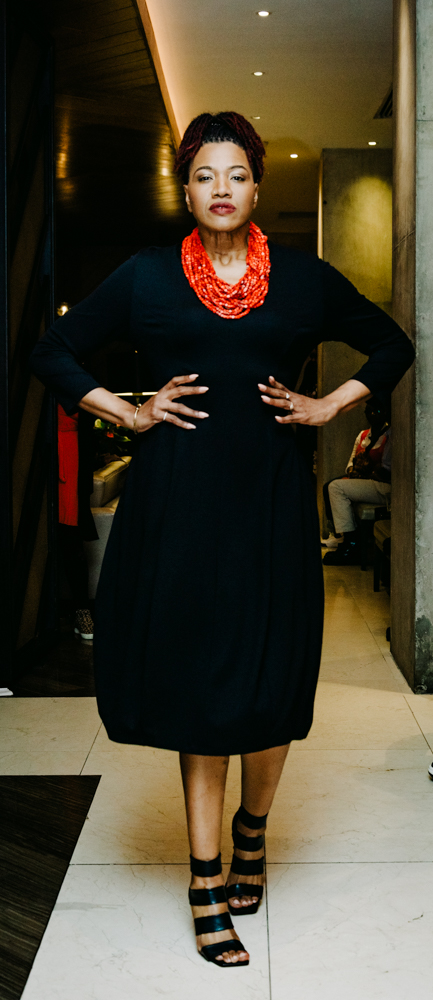 Shimella (@itsladyelise) wears Alembika size 2 in URBAN DOTS BUTTON DOWN SHIRT, NAVY with DENIM ICONIC STRETCH JEANS (left), CHARISMA DRESS with matching leggings (center) and ESSENTIAL OVERSIZED TRAPEZE TOP, RED ROSE with ESSENTIAL PUNTO PANTS, BLACK and a NEXT PASHMINA NECKLACE, RED (right).
