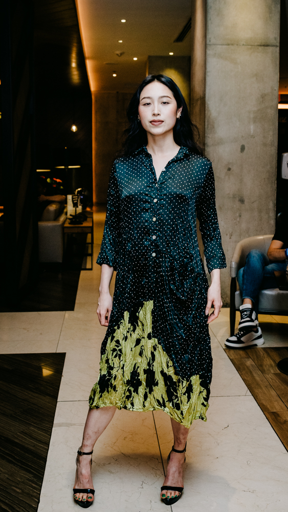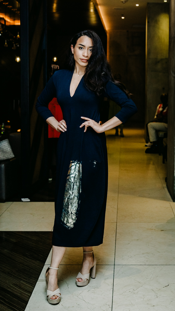 Laudine (@laudanemartin)wears Alembika size 6 in URBAN SAPPORO SHIFT DRESS, KHAKI (left), ESSENTIAL COCOON DRESS, NIGHT (center). Stephanie (@sk.bui) wears Alembika size 1 in CAMPARI WONDERFUL DRESS (right).