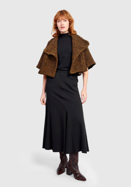 Want it: Because it moves with you beautifully. The inverted cocoon silhouette flatters without clinging, while the gentle drape creates an elongated, feminine line that feels both relaxed and refined.